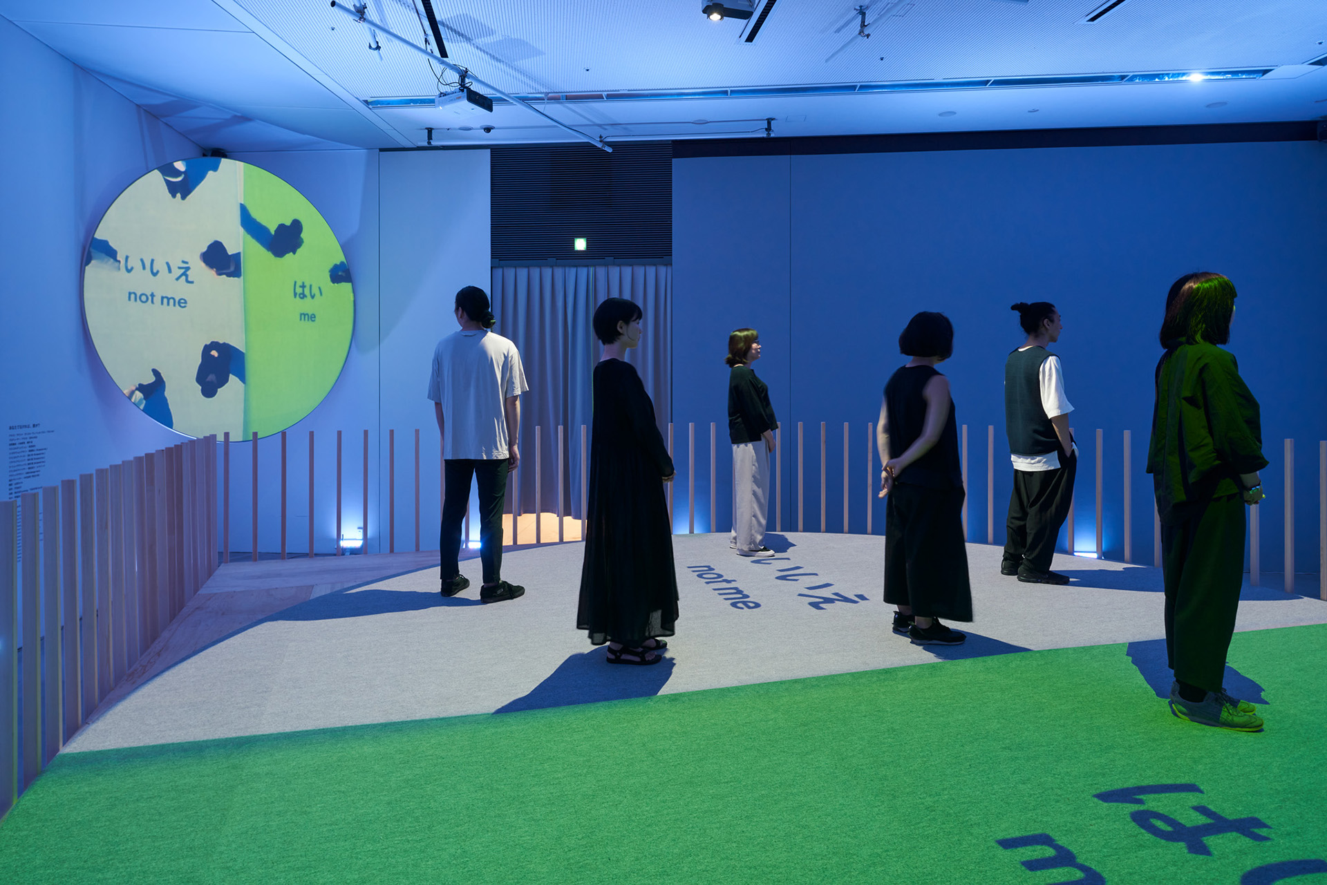 質問に回答することによって、鑑賞者自らもサンプルとなる体験型インスタレーション作品。多数派と少数派を分ける質問の背後には、疑似社会が見えてくる。同時に、生身の他者を前に100%のYESやNOがほぼ成立しないことにも気づかされるだろう。コロナ禍で社会の構造的な問題が明らかになり始めたなか、誰もが多様な社会の当事者であることを突きつける。