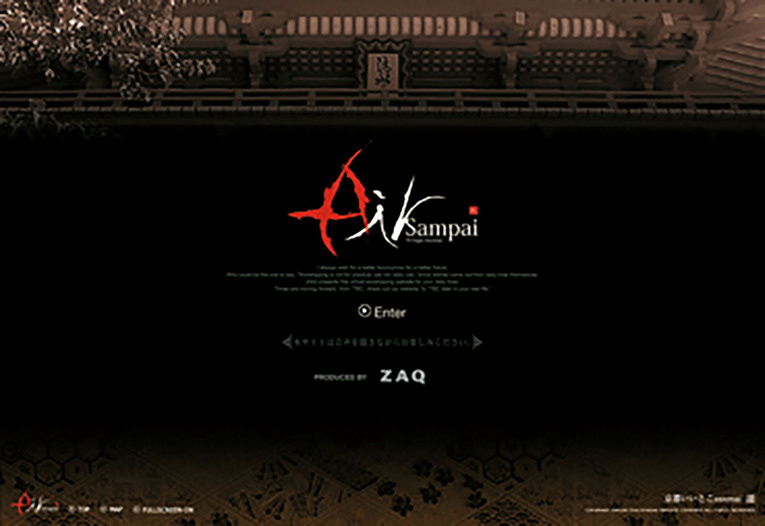 ©関西マルチメディアサービス株式会社 第14回 エンターテインメント部門 審査委員会推薦作品エア参拝Web金田 功一 作品概要京都観光情報サイトのコンテンツ。清水寺、伏見稲荷大社といった神社仏閣の参拝をバーチャルに体験できる。門を通り抜ける前の一礼、手を清める、賽銭などのプリセスを細やかに再現。坂の上に建立された寺への参拝を体感するため、モニターの前でスクワットを行う指示が出るなど、時にユーザーにアクションを促しながら、疲労感も含めた魅力をユーモラスに伝える。 BACK TO AWARD LIST