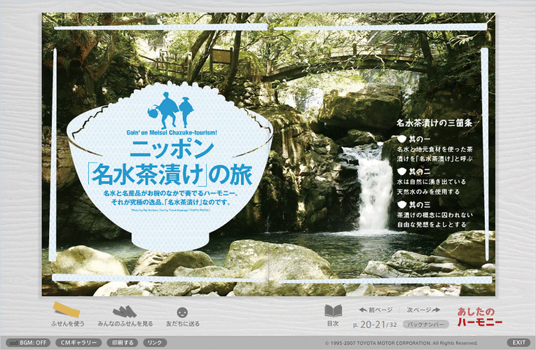 ©1995-2007 TOYOTA MOTOR CORPORATION. All Rights Reserved. 第11回 エンターテインメント部門 審査委員会推薦作品あしたのハーモニーWeb「あしたのハーモニー」製作委員会代表 平山 浩司 [日本] BACK TO AWARD LIST