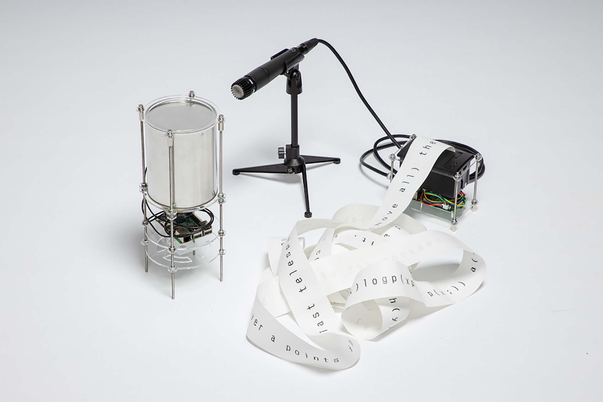 © 2021 Keita Miyashita 第25回 アート部門 審査委員会推薦作品BEAT/BITインタラクティブアート、サウンドアート宮下 恵太[日本] 作品概要音を信号として用いたデジタル通信端末装置によるサウンドインスタレーション。深層学習により生成した文章を、0と1のみで表される二進数のデータへと変換し、打音として表現する。打音は情報として復元、文字として出力される。人間には知覚できない電気信号-bitを、打音という身体的な信号-beatに置き換え知覚化することで、人間と機械の新たな関係性を提案する。 BACK TO AWARD LIST