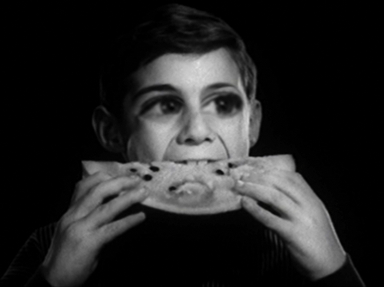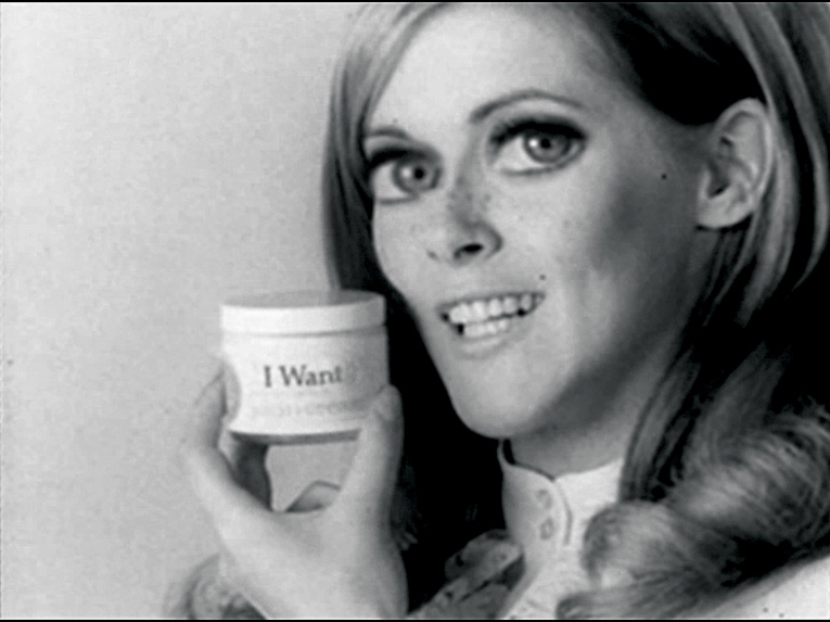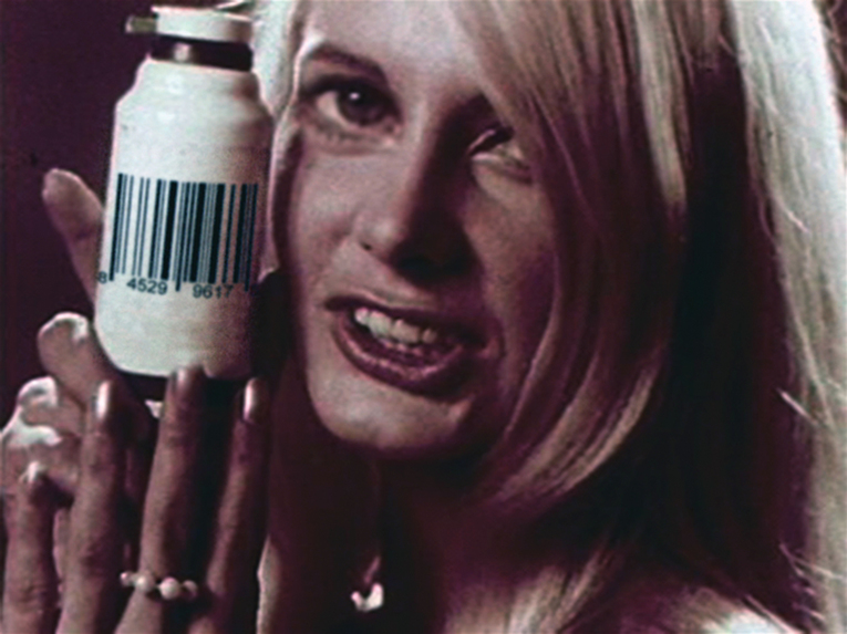 似て非なるモノへと人間を変容させる手法として、登場人物の眼をすべて大きくしている。プリクラのように「眼」と認識できる部分を自動拡大して配する画像処理技術を使っているのだろう。眼の大きくなった人間が、化粧品やアイスクリームなど消費の対象物を持って微笑んでいる。巨大眼の人間は、消費主義文明に侵されて、欲望を肥大させた人間のようにも見えるが、モノトーンの古いコマーシャル映像を素材としているせいか、異国、異時代、異文化が醸し出す世界の遠さが、このフィクションを冷静に見る独特のスタンスをつくっている。その距離感も好ましい。「眼を大きくする」というのは単純なアイディアであるが、発想のユニークさと透徹した完成度の組み合わせによって、大きな成果を上げている。