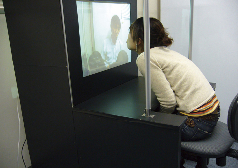 遠隔地にいる相手とスクリーンを通して風によるテレコミュニケーションを実現した作品。手元にあるロウソクの火がスクリーンに映る人物に吹き消されるなど、遠くにいる相手の息遣いまで送受信できる。