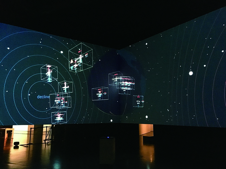 © 2016 Rhizomatiks Research 第20回 アート部門 審査委員会推薦作品chainsメディアインスタレーション真鍋 大度/登本 悠介/石井 通人[日本] 作品概要現在最も取引高の多い暗号通貨、ビットコインの実取引を映像と音で表現し、さらに自動取引システムを構築したインスタレーション。取引発生により音が徐々に盛り上がり、ブロック(取引記録)生成でピークを迎える。ビットコインを支えるブロックチェーン技術のしくみが直感的に理解でき、非中央集権化していく社会が抱えうる問題をも考えさせる。 BACK TO AWARD LIST
