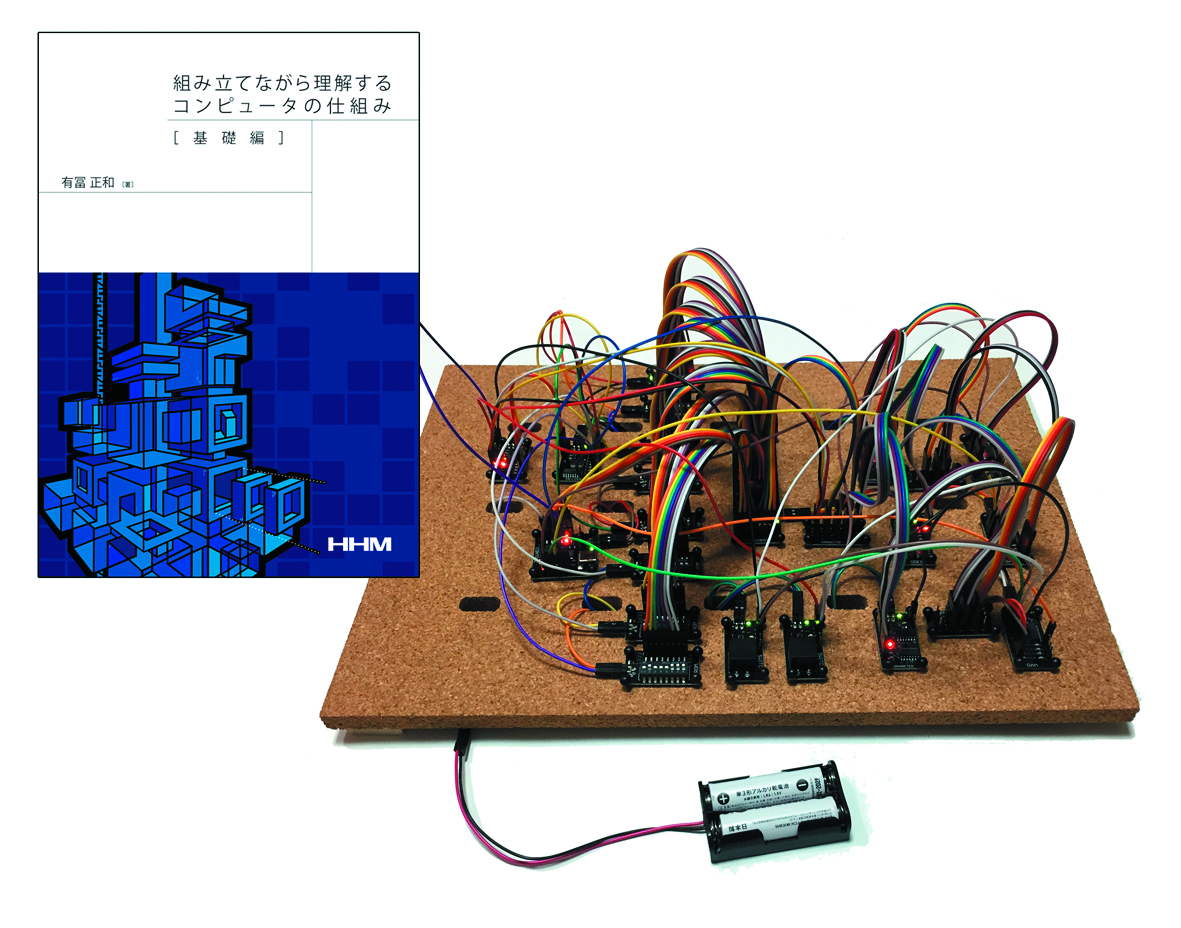 © 2019 HHM Inc. 第24回 エンターテインメント部門 審査委員会推薦作品組み立てながら理解するコンピュータの仕組みプロダクト有冨 正和[日本] 作品概要書籍によるガイドを参考に、コンピュータの基礎的な仕組みを実際に手を動かしながら理解するための組み立てキット。約10種類の回路モジュールを配線し、手動でプログラミングとプログラム実行ができるCPUを作成する。モジュールの各端子には入出力の信号がわかるようにLEDが付いており、視覚的にコンピュータの動作を把握することができる。 BACK TO AWARD LIST