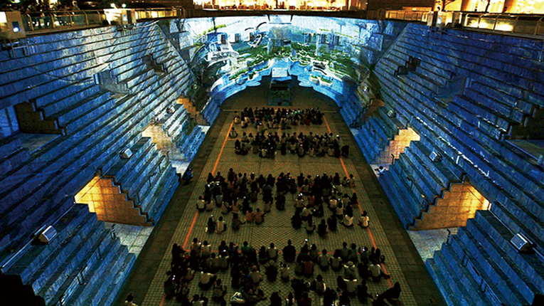 映像世界に入り込んだような没入感覚が味わえる180度体感型のプロジェクションマッピング。かつては造船所のドックで、現在は国の重要文化財にも指定されている「ドックヤードガーデン」にて、横浜開港の時代から未来に至るまでのストーリーが、石造りの独特の形状を生かした形で投影される。