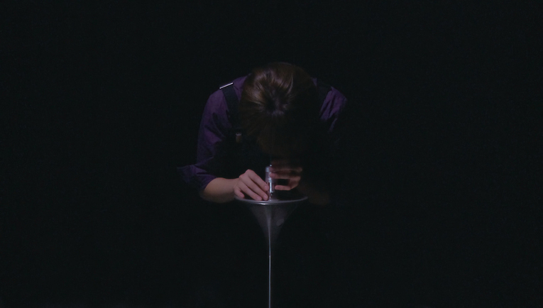 空間発生のプロセスをモデルとした独自のソフトウェアを、わずか爪ほどの大きさの液晶ディスプレイに可視化して、顕微鏡で覗くという作品。 発生と消滅を繰り返す、無数の次元オブジェクトたちは、…点、線、面、立体、超立体…と、造形を始める。