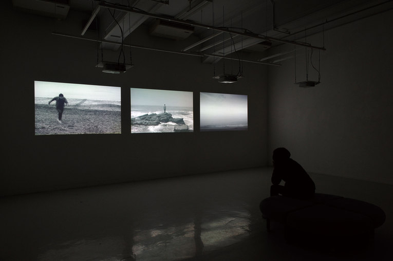 ©HAN Ishu 第16回 アート部門 審査委員会推薦作品海の形インスタレーション潘 逸舟 作品概要海に向かって前進する、服が海から戻る、尖閣諸島が海に沈む。さまざまなことが海を背景に起こっているという状況が3面プロジェクションされている。海は私たちにとって住む場所ではなく、つねに陸から眺める「風景」として存在している。その風景と向き合うことから私たちの社会について考えてみたい。 BACK TO AWARD LIST