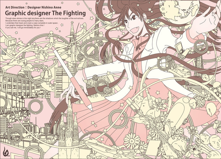©西野 杏 第15回 マンガ部門 審査委員会推薦作品戦うグラフィック!オンラインマンガ西野 杏 作品概要グラフィックデザイナーの生態を描いた業界漫画。デザイン性に富んだデジタル作品ならではの新しい表現法を目指し、読者がPCモニターで読むことを想定した上で、最適化された表現を突き詰めて描いている。どんなPCモニターやサイズでもカラフルな配色を楽しめ、線が劣化せずクリアに見えるように、ベクトルグラフィックで制作されている。漫画における斬新なインターフェースを商業デザインの手法からアプローチしている。 BACK TO AWARD LIST