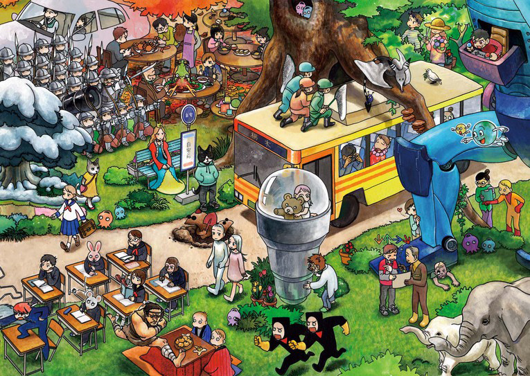 ウェブ文芸誌での連載を経て、著者の3冊目の単行本となった本作は、最短で2ページ、最長でも11ページという、コンパクトなページ数で完結する作品を集めたショートショート・コミック。年に一度の“ 龍猟”を習わしとしている里山で龍料理を食す『龍の逆鱗』、長い冬が続く村の一人の青年が春を探して森を歩く『湖底の春』、「まる」「さんかく」「しかく」を料理して食べる過程を描く『記号を食べる』、人間誰もが物語の主人公として生まれ暮らす世界の『ショートショートの主人公』、架空国家についての中学生たちの話し合いが展開していく『遠き理想郷』、とある生物の進化の過程を描いた『生き残るため』など、全33編を収録。コメディ、昔話、寓話、ファンタジー、SFなどさまざまな発想を、少女マンガ風や劇画調のタッチも織り交ぜての多彩な絵柄で描きあげる、千変万化の掌編集。