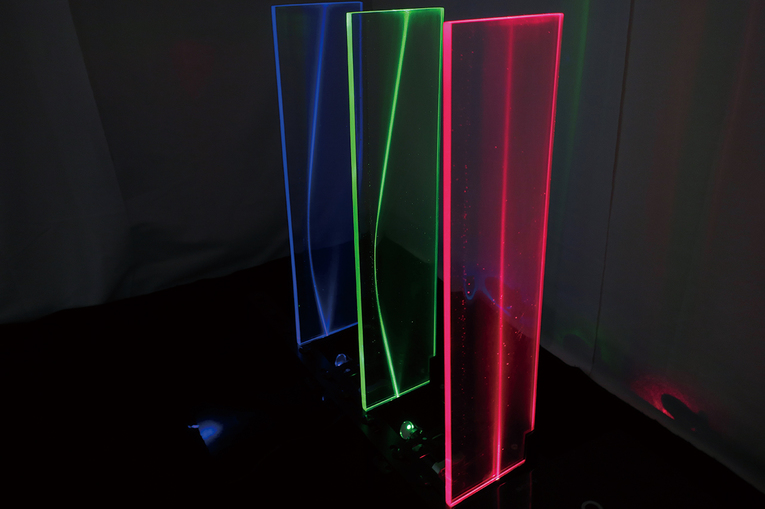 © Kazuhiro Tanimoto 第21回 アート部門 審査委員会推薦作品Light-bending materialメディアインスタレーション谷本 一洋 [日本] 作品概要独自に検討してきた化学的手法により、光の進路を曲線的に変化させる透明な固体材料を開発することに成功した。光が直線から曲線へ変化していく姿を観察することができる。人間の脳は光の直進性を前提に物体を認識する。この作品はテクノロ ジーの進歩により物理的な事実と人間の認識が乖離し続けていくことを暗示している。 BACK TO AWARD LIST