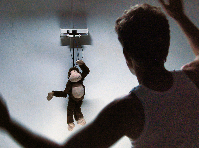かわいいサルの人形が、人間の体のしぐさを真似るインタラクティブ・インスタレーション。サルの内部に埋め込まれた、指示通りに動くよう構成されたセンサーやマイクロコントローラーで稼働する10個の制御装置によってサルが、人間の動きを滑らかにトレースする。人間そっくりのロボットよりもぬいぐるみの方に人間らしさや愛着を覚えてしまうというアイロニカルなアプローチを、サルの姿を借りて提示した作品。