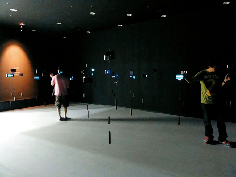 ©赤松 正行 第14回 アート部門 審査委員会推薦作品オケアノスのブイインタラクティブアート赤松 正行 作品概要 40台以上のモバイル・デバイス(iPhone)が会場に吊るされた映像音響インスタレーション。画面をタッチしたり、デバイスを動かすことで音と光が放たれ、同時にネットワークを通じてほかのデバイスも反応する。鑑賞者は集合的な音楽と光景をつくり出し、それは展示会場だけではなく会場外へも伝搬し、さらには見知らぬ第三者までも引き入れることになる。 BACK TO AWARD LIST