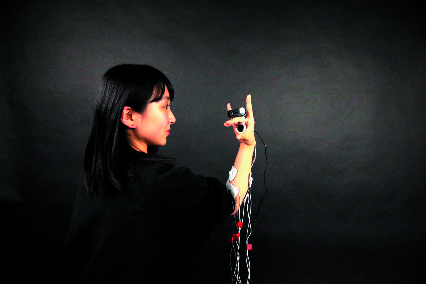 © 2019 Shin Hanagata, Katsumi Furuta and Yasuaki Kakehi 第22回 アート部門 審査委員会推薦作品Paralogueメディアインスタレーション花形 槙/古田 克海/筧 康明 [日本] 作品概要腕に他者を寄生させ、自己と他者が重なり合う身体を介した対話型作品。HMDを装着する体験者(寄生者)は、パフォーマ(被寄生者)の指先視点の映像を鑑賞する。さらに体験者の頭部の動きは、電気刺激によりパフォーマの手指と腕の動きにリアルタイムに変換・同期され、スピーカから届けられる音声とともに遠隔対話を成立させる。 BACK TO AWARD LIST