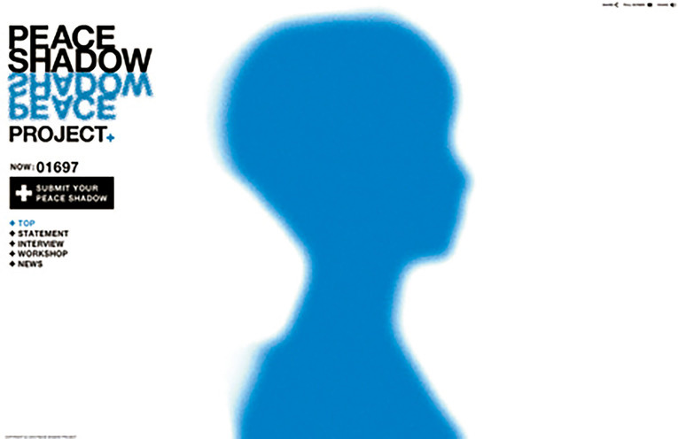原爆の閃光によって壁などに焼き付いた人の影=「死の影」の記憶を、人間の意思によって「平和の影」へと変えていくアートプロジェクト。参加者はWebサイトやワークショップを通じて、自らの「影」を焼き付け、非核の意思表明とすることができる。サイトではWebカムを使って誰でも「影」を撮影し、デザインできる。非核の意思を示す、新たな形の署名活動。