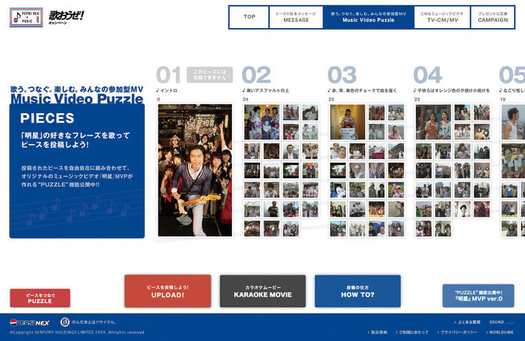 34分割されたキャンペーンソング『明星』のMusic Videoのフレーズをパズルのように組み合わせ、また自分で投稿したムービーも加えて、オリジナルのMVをつくることができる。YouTube上に自動的に公開できる仕組みも用意。投稿ムービーは700を超え、無数の“日本を元気にする”『明星』オリジナルMVが誕生した。