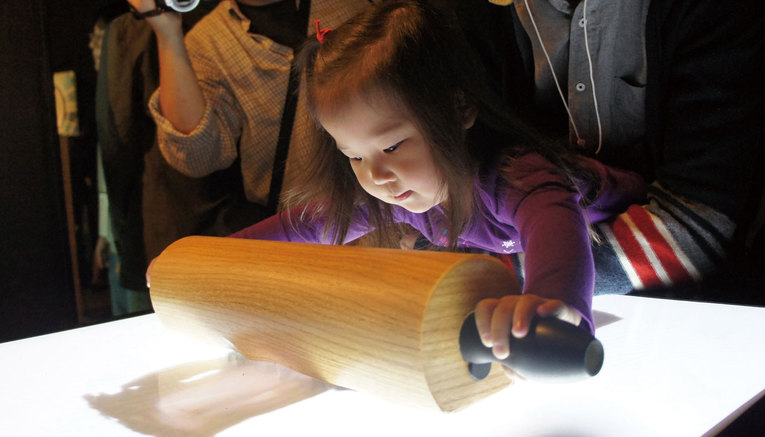 ©NAKAGAKI Ken/KAKEHI Yasuaki 第16回 エンターテインメント部門 審査委員会推薦作品ペタンコ麺棒ガジェット中垣 拳/今野 恵菜/田代 俊太郎/池澤 彩野花/木村 優作/仁義 勝/筧 康明 作品概要粘土や空き缶など、物体を潰し変形させる行為には独特の快感が伴う。本作品は、身の回りの物体を粘土のように自由に潰して伸ばす感触を味わえるエンターテインメント装置である。3Dスキャンされた物体の映像の上に麺棒型デバイスを転がすことで、摩擦や形状の変化を、触覚的に感じ取ることができる。 BACK TO AWARD LIST