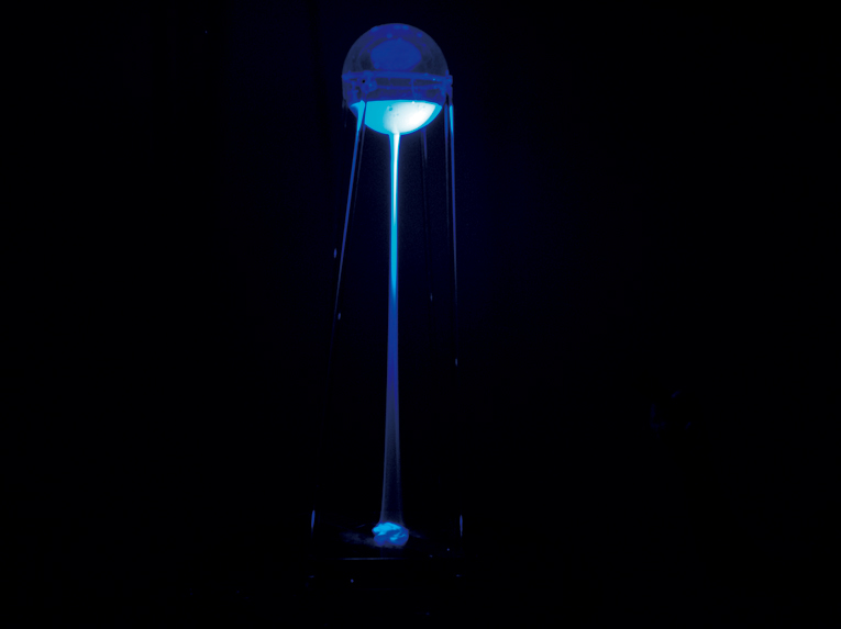 本作は全く新しい演奏体験をもたらす流動体、不定形のシンセサイザーだ。スライムを触る、あるいは変形させることで音が変わるこのサウンドデバイスは、まるで音の雲を摑んでいるような音波を作り出すことができる。シンセサイザー本体と自分をつなぎ、別の接点をスライムにつなげることで、スライムを触ったときに音が出る仕組みだ。本作は「ワーボ・フォルマント・オーゲル」(1937年)、レイモンド・スコットのシンセサイザー「Clavivox」(52年)、そしてロバート・モーグの「モーグ・シンセサイザー」(64年)以降、かつてない不定形のシンセサイザーを志向する楽器でもある。また音を生み出すこと、音を変化させることに特化しているため、音階を出すことにこだわらず、リズムボックスとしての機能も持ち合わせている。