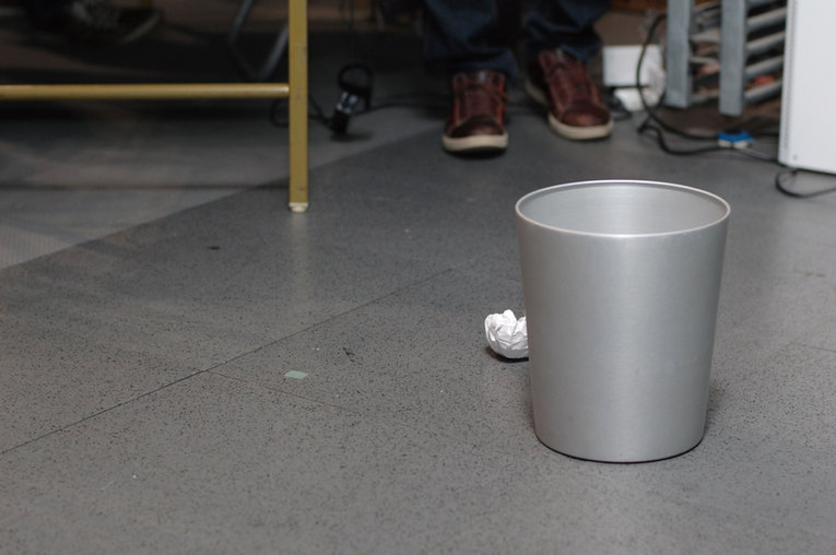 ディスプレイを使わない作品の物理的な「存在」には、さまざまな評価を飲み込んでしまう包容力があるようで、電源をOFFにしてもそこに居てくれる存在感はガジェット作品ならではのものである。放り投げたゴミの落下地点に向かって、サーッと動いてゴミを受け止める本作品の審査では、設計・工作もプレゼンされていてしっかりと計算されて作られているが、本当にゴミが入るのかとも論議された。しかし、その動作精度よりも、ゴミが入る場合もあれば入らない場合もあるのが面白いのであって、落下地点に向かって動いてくれるゴミ箱そのものがエンターテインメントであると評価された。入れば上手と感嘆し、入らなければ再挑戦と声援を掛けたくなるような、そんな感情移入していく作品ではないだろうか。