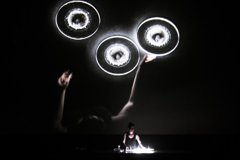 ©2015 Myriam Bleau Photo: GRIDSPACE / Elektra E16 第19回 アート部門 審査委員会推薦作品Soft RevolversメディアパフォーマンスMyriam BLEAU 作品概要本作は、インターフェイスとなる4個の大きなコマのようなデバイスを回転させて光と音を発する、メディアパフォーマンスである。個々のコマはそれぞれ異なる電子音楽を奏で、コマのなかに取りつけられたLEDライトが音と同期して明滅し、回転する美しい光輪を出現させる。コマを回す仕草や奏でる音楽が、ターンテーブルやDJカルチャーを想起させる。 BACK TO AWARD LIST