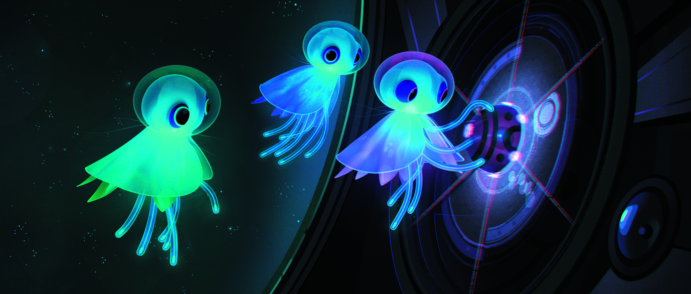 宇宙の彼方に浮かぶ、現在は使われていない宇宙ステーションで、青く光る生き物たちがステーショ ン内を探検している。突然、赤い光線を放つ凶暴なロボットが生き物たちを襲い始める。逃げまどう生き物たちが1匹、また1匹と捕まっていくなか、最後の1匹が反撃を始める。穏やかな前半から一転、攻撃的な場面へと展開する。鑑賞者の感情を揺さぶるSF作品。
