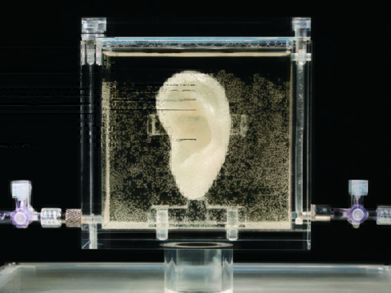 ©Diemut Strebe 第18回 アート部門 審査委員会推薦作品SugababeハイブリッドアートDiemut STREBE 作品概要 本作は、ヴィンセント・ヴァン・ゴッホの弟の子孫の遺伝子と人工軟骨から生成された「生きている」ゴッホの耳のレプリカである。ある物体の構成要素がすべて置き換えられたとき、その物体は同じであるといえるのか、というテセウスのパラドックスを人間の身体において検証する作品。レプリカに話しかけると、神経インパルスを模した擬似音が生成される。 BACK TO AWARD LIST