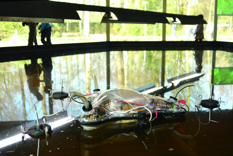 『Symbiotic Machine』は藻類が光合成によって放出するエネルギーを吸収し、それを原動力として水面を移動するバイオマシンである。移動しながら、エネルギーの供給源となる光合成生物を探して集め、自然環境から得たエネルギーを取り込み、浮遊性のロボット機構による処理で増幅させて活動する。池、用水路、川や海に生息する微生物をエネルギー源とし、また有害な藻が発生した場合には、それらを除去する機能も備えている。アート、デザイン、バイオテクノロジーの融合によって、人間と自然の新しい共生関係を示唆する作品である。