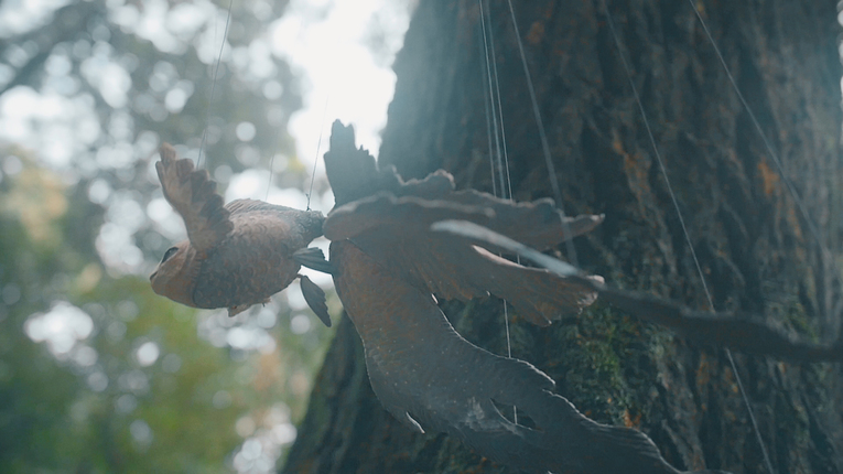 音楽家の石川泰昭が制作した曲と「いとまとあやこ」の平井亜矢子によるボーカルをバックに、木彫あやつり人形師のミカヅキフタツが製作した木彫の魚のマリオネットが、草木の中を泳ぐように動く映像作品。Keishi Kondoによる映像は、背景のぼかしや上方からのライティング、淡い色調の調整により、近所の公園にありそうな風景を水中のように見せる。魚は胸びれや尾びれなど分割されたパーツが巧みに動かされて浮遊感が表現される。また木製の鱗の質感など、思わず触れたくなるような本物の木ならではの存在感がカメラに写し取られている。楽曲、映像、彫像、そして操る手までをひとつの作品に盛り込み、その総体が見るものに詩的な情感を与える作品。