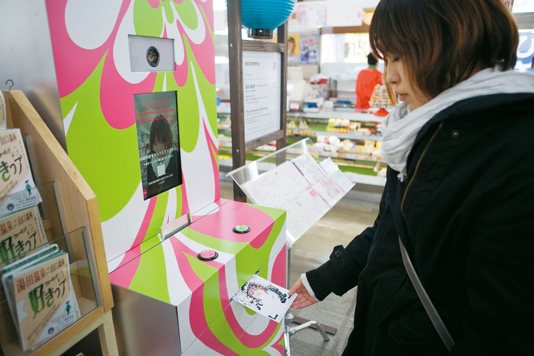 温泉街4カ所の撮影ブースを巡ってオリジナルポートレートをつくることで「人と街」との新しい出会いが見えてくる体験型作品。撮影できるのは顔と背景の断片だけである。すべてを巡るとポートレートが完成する。参加者の顔が合成された映像はインターネットからダウンロードできるだけでなく、街の巨大スクリーンにも投影される。