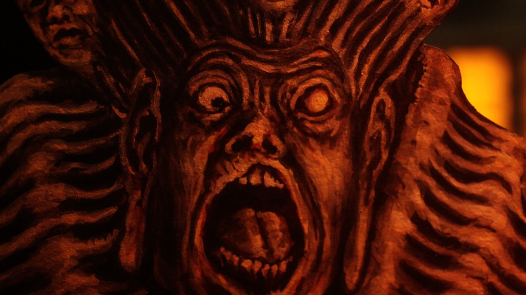 『燃える仏像人間』はアニメーションの技法のひとつ、リミテッド・アニメーションの最果てである“劇メーション”という難儀な手法で制作されている。“劇メーション”とは、1976年のテレビアニメ『妖怪伝 猫目小僧』で強引に実験された、劇画とアニメーションの融合だ。切り絵と特殊効果による「激ロウ・バジェット(小規模予算)」なその流儀は、アニメーションの基礎である「連続した静止画像の連なり」をも放棄せざるを得なかった日本アニメ界のトラウマなのだ。このトラウマを克服するかのごとく、人間と仏像の「融合生命体」を描いた本作には、無菌状態のテクノロジー至上主義をあざ笑うかのように、手垢と怨念がアニマとして焼き付いている。絵の具と紙が今世紀においても最も有効なテクノロジーのひとつであり、果敢なくも愛おしいピュア・メディアなのだという事実を我々はこの作品から突き付けられるのである。(宇川 直宏)