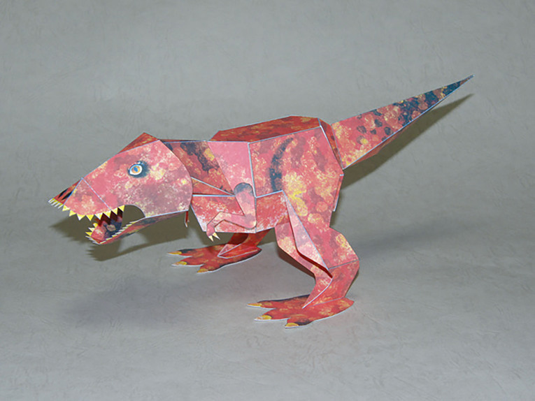 An elaborate papercraft collection. A total of 12 dinosaurs are to be found here. Many feature amusing movement patterns, such as flat dinosaurs which jump up when stimulation is applied, and dinosaurs which open their mouths when their backs are pressed. In the past, this series has developed penguins, lions and the like, but with the adoption of the dinosaur motif, the impact of the mechanical dynamism has been enhanced. Although made of paper, these are toys that can really be played with.