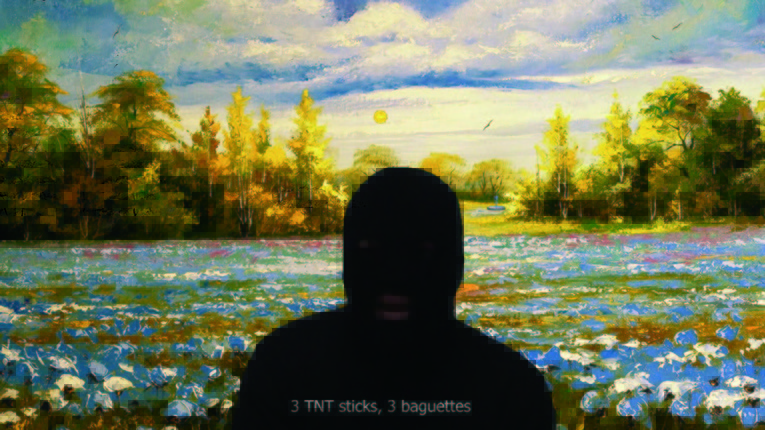 In this film, we learn the “recipe” for a homemade bomb, performed in the manner of a cooking show by a masked man against footage of blooming flowers from Egyptian TV in the 1990s. It is a simple, tongue-in-cheek gesture resembling a filler for a TV program, which is complicated by the action unfolding in the paradisal landscape in the background, and the iconic music of G. ZAMFIR, known from international blockbuster dramas.