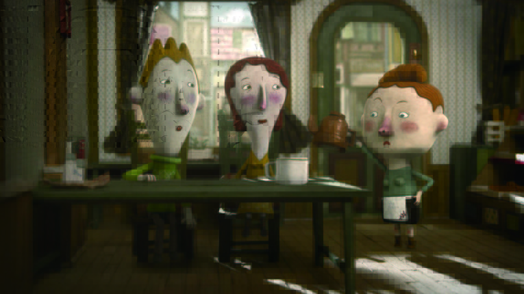 Between Times is the story of the arrival of a mysterious street clock, told from the pointof-view of a small cuckoo clock pinned to a bakery wall. Each character that comes into he bakery has a different relationship to time. The film uses mixed-media techniques, combining computer graphics, stop motion, and drawing.