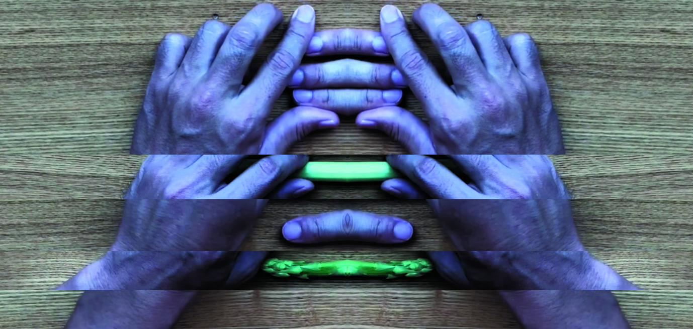 A video image realm presented in binary left/ right separation with the use of completely or- dinary mirrors. Even as the vegetable sticks on one side (the objects) and three fingers on the other (the bodies) – which are detached through the mirroring – come to loosely group together, someone’s hands tweak their arrangements. A media installation designed to give viewers an experience of “bodiject” (body as object).
