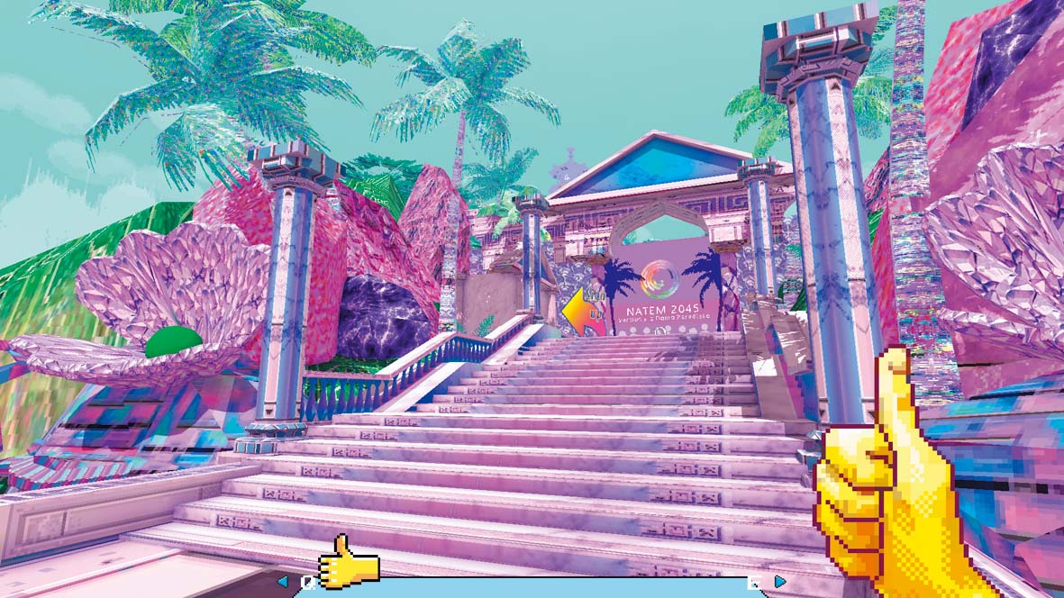 The work is a first-person exploration game set in a digital world. The player climbs up the internet social ladder by collecting likes doing different activities. The game is a satirical take on consumer capitalism that explores ideas like accelerationism or cultural capital in the digital era and mixes them with a nostalgic and surreal interpretation of technology and pop culture.