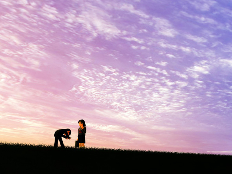 The tense feeling when a boy at puberty tells his first love to a girl is depicted comically. This handsome footage is unique to CG. It is not easy to make people laugh; however, this work made it possible by using a group of Taiko drummers. In many cases, technical attainment tends to be the center of attention in CG production; however, this one-person work was evaluated for its firm understanding of such a context.