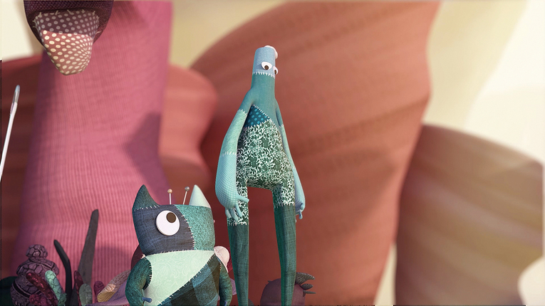 One morning, two patched soft toys named Cole and Graham wander into a patchwork world to x Cole who has lost one eye. In order to reach the button they want, they have to cross the valley with a failed bridge. In the col- orful world of computer graphics, the two characters, each with unique personality, face a big obstacle.