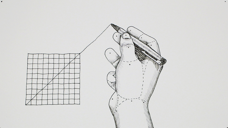 In this hand drawn animation a line is being extrapolated through a grid. When the line, drawn by a real hand, surpasses the boundar- ies of the grid, the process spreads to and re ects on its surroundings. Beyond each boundary the extrapolation of movement is causing deformation in a systematic but spec- ulative way. The project tries to re ect on the limits of what can be predicted and understood through methodical and linear thinking.