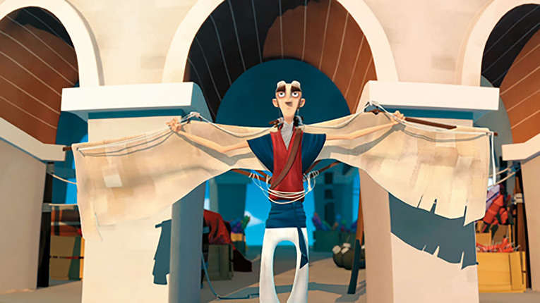 A man is standing at the top of a spire. A wing-shaped flying machine is attached to his back. He is about to take a step into the void, when suddenly a block falls. Hezarfen AHMED CELEBI is a real-life person who successfuIIy completed a 1.5 kilometers flight in the 17th century in Turkey. A fusion of 2D and 3D images, this nonstop action animation is arranged on the true story of Hezarfen.