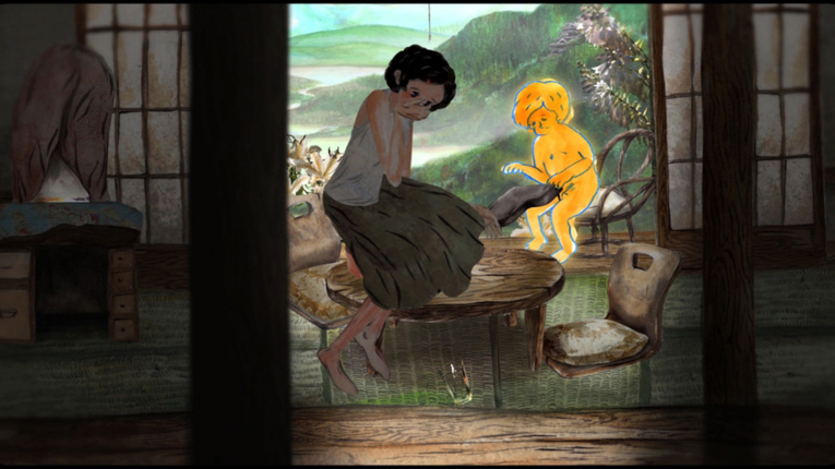 A resort area, somewhere rural, amid pine trees so grand they look as if they were painted on Fusuma doors; the sliding doors of a Japanese house, and a bustling ropeway traveling back and forth between mountain peaks. There is a girl who transforms into an ear, a naked, yellow man, and newts who walk around as if they were humans. Together, they are giving a concert on an outdoor stage by the lake. The creator depicts the strange characters, who are very reminiscent of Japanese monsters, with his humid and unique view.