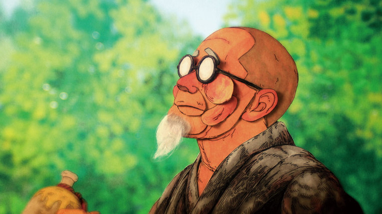 Inspired by TANEDA Santoka (1882-1940), one of Japan’s most prominent free-verse haiku poets, this animated work turns the emotion of “loneliness” into a symbol. Surrounded by mountain greenery in the midst of a solitary journey, the protagonist, redfaced and sl ightly tipsy, is portrayed in meticulous detail using a cutout technique.