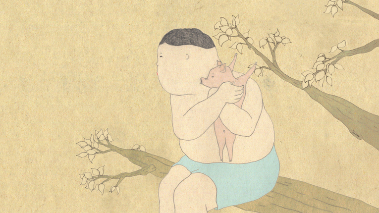 There is a pig in front of the house. There are people in the house. Everyone knows about the pig, and the pig is aware of everyone, but none of them knows how and to what extent everyone else or the pig knows about each other. Mom doesn’t know about Dad, either… Drawn with mechanical pencil with its 0.3mm diameter lead on zarabanshi (coarse paper), the animation delivers a unique sense of image that utilizes the texture of the paper and the heterogeneity of lines.