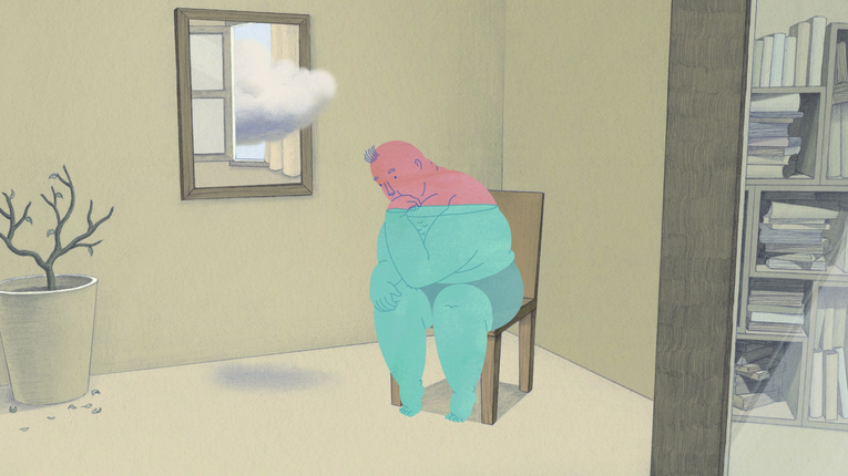 The man on the chair is tormented and constantly doubts his very own existence. His creator, JEONG Dahee, makes the comment, “It is merely a picture that I created… Could I also be an image crafted by others?” With a philosophical touch in a playful and visually challenging manner, this animated short film raises existential questions: “Where do I come from?” “Where am I?” “What is the universe?” During her studies of art history, animation director JEONG encountered many paintings and sculptures that portray a figure thinking while sitting on a chair. Inspired by her discovery that over the centuries many artists have depicted seated figures contemplating the “existence of humanity”, the artist developed her own unique and sophisticated version of a man falling into deep thought as he sits on a chair.