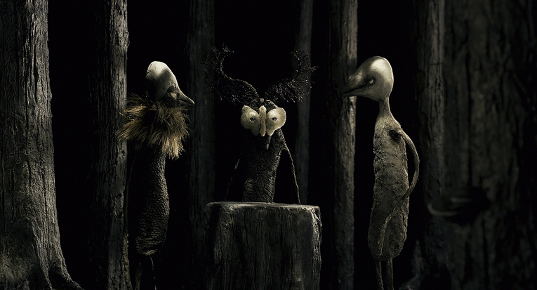 At night in a dark forest, creatures gather around a tree stub to gamble. What they are putting at stake is their innermost, taken out from their heads or chests. With stop motion animation, the work depicts a mystical world of creatures with multiple faces.