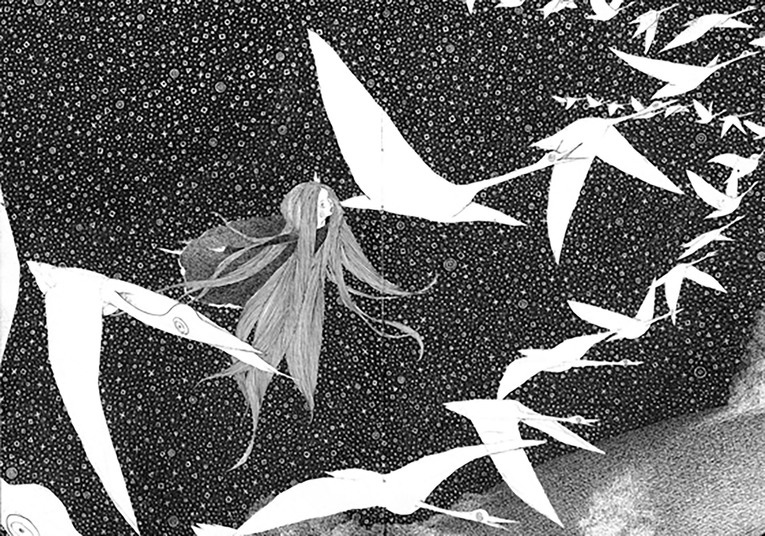 The artist draws each page off the top of his head. Scenes in everyday life suddenly turn into a story about a girl’s dream. The pieces were drawn every day at a coffee shop with a ballpoint pen and a brush pen. No specific story is in the mind of the artist as he begins drawing. No draft or modification is done to let the artist freely express his imagination on each page, just like a picture diary.