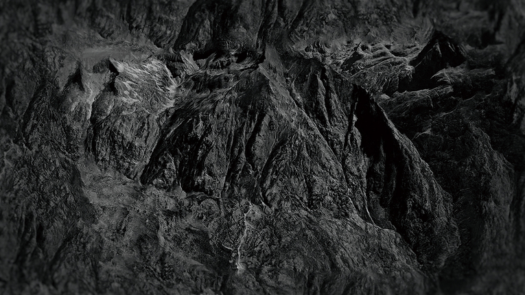 Based on an hypothesis on how mountains might have been formed, the work is an evolv- ing cycle focusing on landscape. Generated with satellite imagery and 3D models from Google Earth as well as through animation on computer, the video shows, also with audio, a mountain chain undergoing multiple metamor- phoses. Gradually, entropy increases and the monolithic makes way for the microscopic.