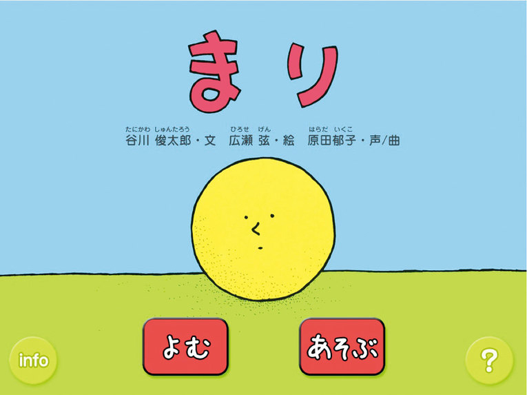 Based on the long-selling picture book Mari, this application integrates narration and background music by HARADA Ikuko (a member of the band Clammbon) with the original text by TANIKAWA Shuntaro and pictures by HIROSE Gen. The work combines the pleasure of listening with the pleasure of moving a physics-engine simulation of the main character. Regardless of their age, everyone can enjoy the sounds and tactile sensations of Mari.