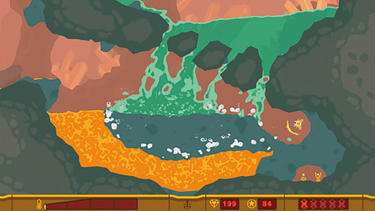An innovative visual action shooting game that uses PlayStation3’s processing capacity while retaining the old-time graphic style of the 8-bitera. Players operate an underground search vessel and defeat monsters who try to attack them as they try to rescue survivors stranded in caves, while the configuration can be changed to settings such as “Ground ruptures and water pours in” and “Magma hardens in the water,” making this a game with a strong puzzlesolving element.