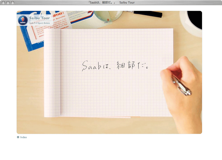 ©General Motors Japan Ltd. 10th Entertainment Division Jury SelectionsSaab “Saibu” TourWeb [Japan]ITO Naoki BACK TO AWARD LIST