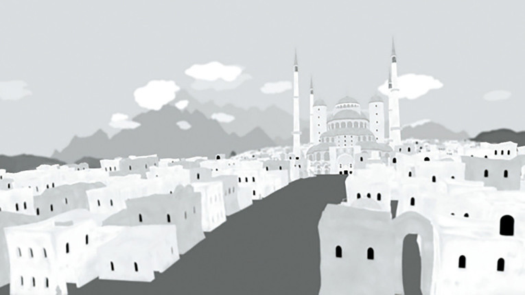 This computer graphics imagery takes two opposite concepts, black and white, and creates a story about the origin of shadings. Once upon a time, there were two nations, Black and White, and a dog that both their kings dearly cherished. Eventually the two nations went to war and the dog died, a casualty of the war. Both nations admitted to their stupidity and reconciled; thus shadings were born in this world. The last scene is a magnificent depiction of the moment that light shines into a world without shadings.