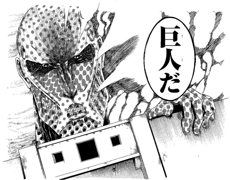 Shingeki no Kyojin (Giants Attacking Us). In the world where mysterious giants that prey on humans have everything under their control, humans merely serve as prey. ln order to defend themselves, humans have built high robust walls around the field of their activities. They have prevented the invasion by the giants for over 100 years in exchange for their freedom outside the walls. Their superficial freedom, however, collapses due to the emergence of super humongous giants that are taller than the walls, and a hopeless fight begins. This s an action manga of mankind’s fight against the giants.